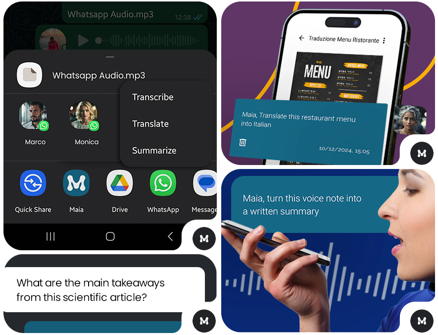 With Quick Actions, you can transcribe, summarize, and translate content in a few seconds, all within Maia App’s interface.