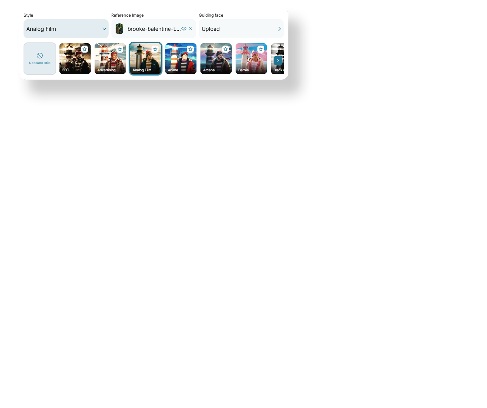– a face reference for the subject of the image, which Maia V8 will blend with the chosen style while also preserving its distinct features.